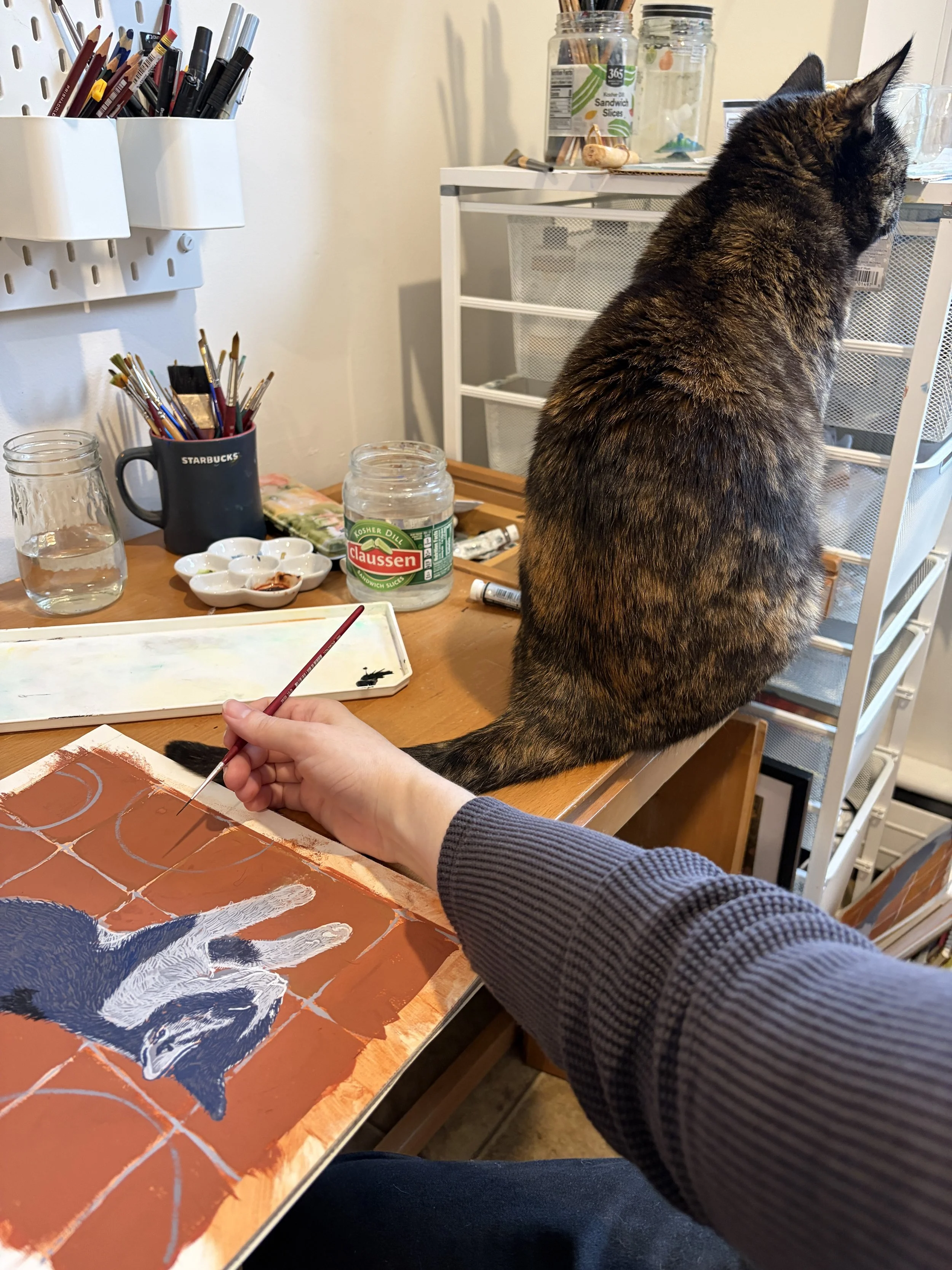 Sarah works primarily in gouache and draws inspiration from many places- from children’s books to Japanese woodblock prints. She likes to create lush, colorful paintings of plants and animals.